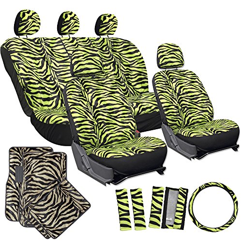 OxGord 21 pc Green Zebra Print Seat Covers and Brown Zebra Print Floor Mats For Chevrolet Spark