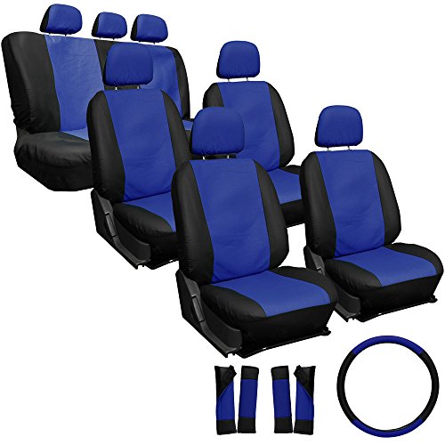 OxGord Leatherette Seat Cover Set for Chevrolet SUVs, Airbag Compatible, Split Bench, Blue & Black