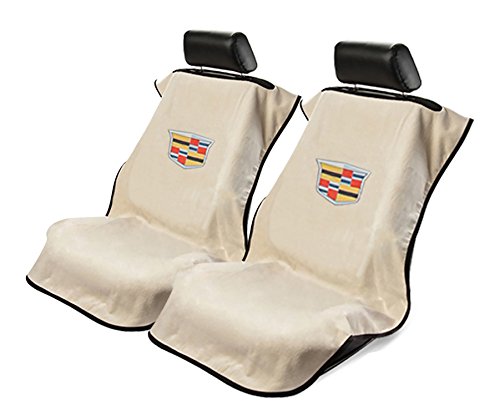 Pair of Seat Armour Tan Towel Seat Covers for Cadillac (SA100CADT). Own Cadillac and want to show off your loyalty? this Seat Cover with the official logo for Cadillac can make you do just that!, the Tan color blends very well with most interiors.