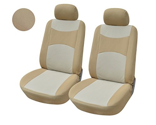 116003 Tan-fabric 2 Front Car Seat Covers Compatible To Toyota 4Runner Avalon Avanza Camry Corolla Land Cruiser Prius Venza